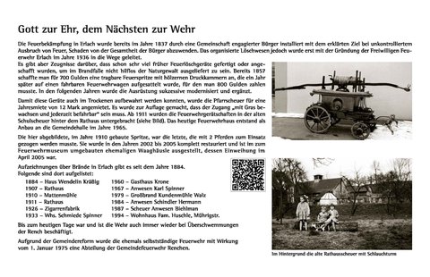 Gehen Sie auf einen geschichtlichen Streifzug durch die Gemeinde Erlach. An 17 prägnanten Stellen dokumentieren Geschichtstafeln mit alten Bildern und Texten wie es früher einmal war und erklären die Ortsgeschichte.